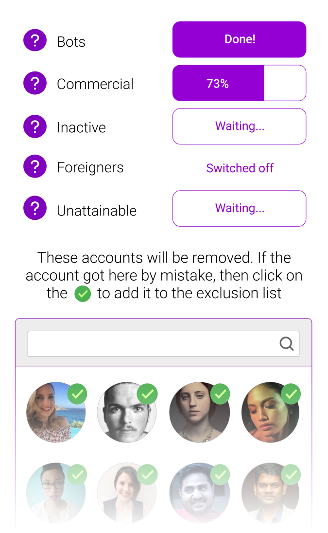 I'm one of those who bought bots to increase the number of followers in the past. Now I use Spamguard to fix this mistake and start to grow organically.